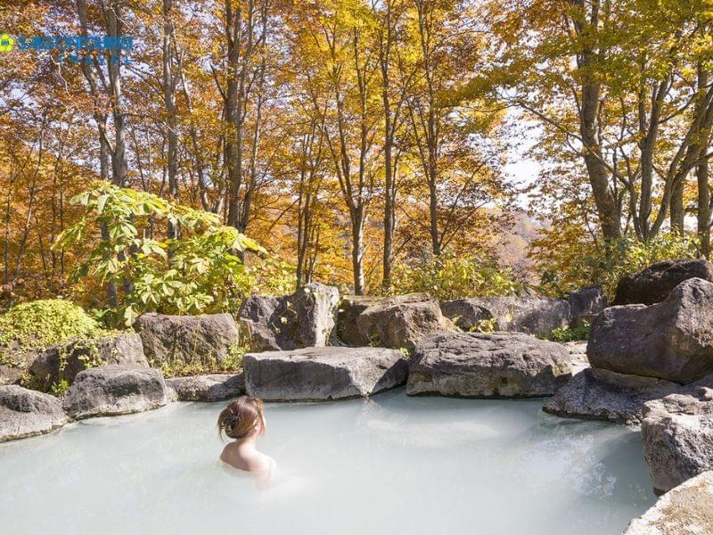 Ngâm mình trong suối nước nóng (Onsen) giữa khung cảnh tuyết phủ – một trải nghiệm không thể bỏ lỡ.